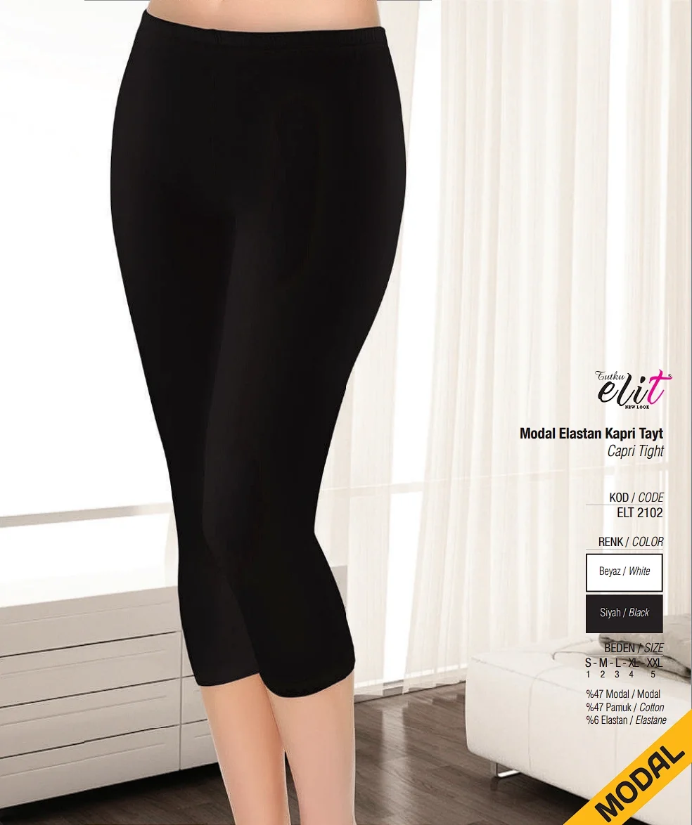 Şık ve konforlu bu bayan kapri tayt, hem spor yaparken hem de günlük hayatta rahatlıkla tercih edebileceğiniz bir seçenektir. Esnek yapısı ve nefes alabilen kumaşıyla size hareket özgürlüğü sağlar. 2102 Modal Elestan Bayan Kapri Tayt, spor salonunda ve günlük koşuşturmalarda sizinle birlikte olacak ideal bir Üründür.