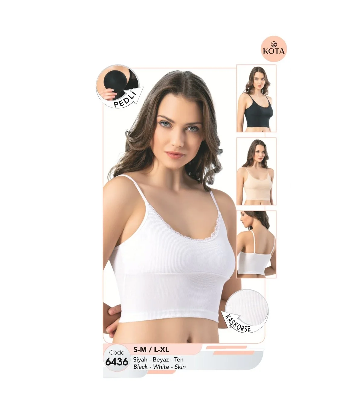 Kota Bayan Kaşkorse Tırnak Dantelli İp Askılı Krop, farklı renklerde ve çeşitli bedenlerde sunulmaktadır. Sitemizdeki ürün sayfalarında bulunan ölçü tablolarını inceleyerek doğru seçimi yapabilirsiniz. İhtiyacınıza en uygun iç giyim ürünlerini seçmek için hemen tıklayın! Wakor Toptan İç Giyim Ürünleri - En Trend Renk ve Beden Seçenekleriyle.
