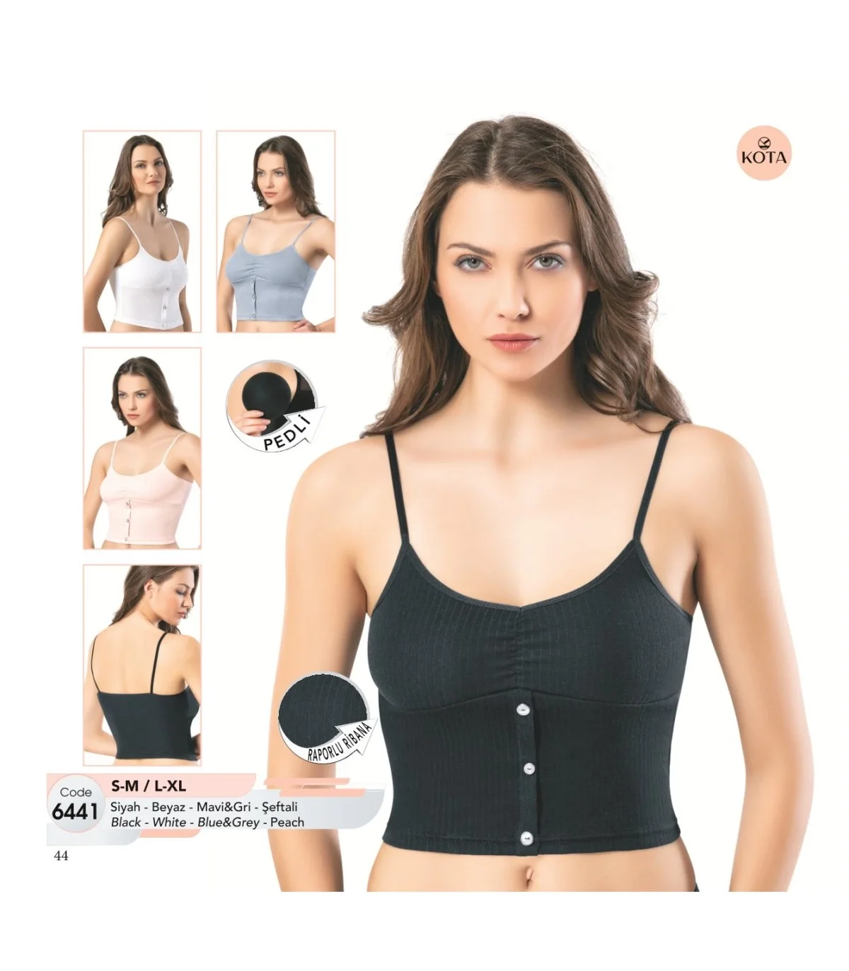 Wakor Toptan, iç giyimde kaliteyi ve şıklığı bir araya getiriyor! Kota Bayan Raporlu İp Askılı Modelli Krop koleksiyonumuzla her tarza uygun iç giyim seçeneklerini keşfedin. Ürünlerimizde çeşitli renk ve beden seçenekleri mevcuttur, böylece tam size uygun olanı bulabilirsiniz.