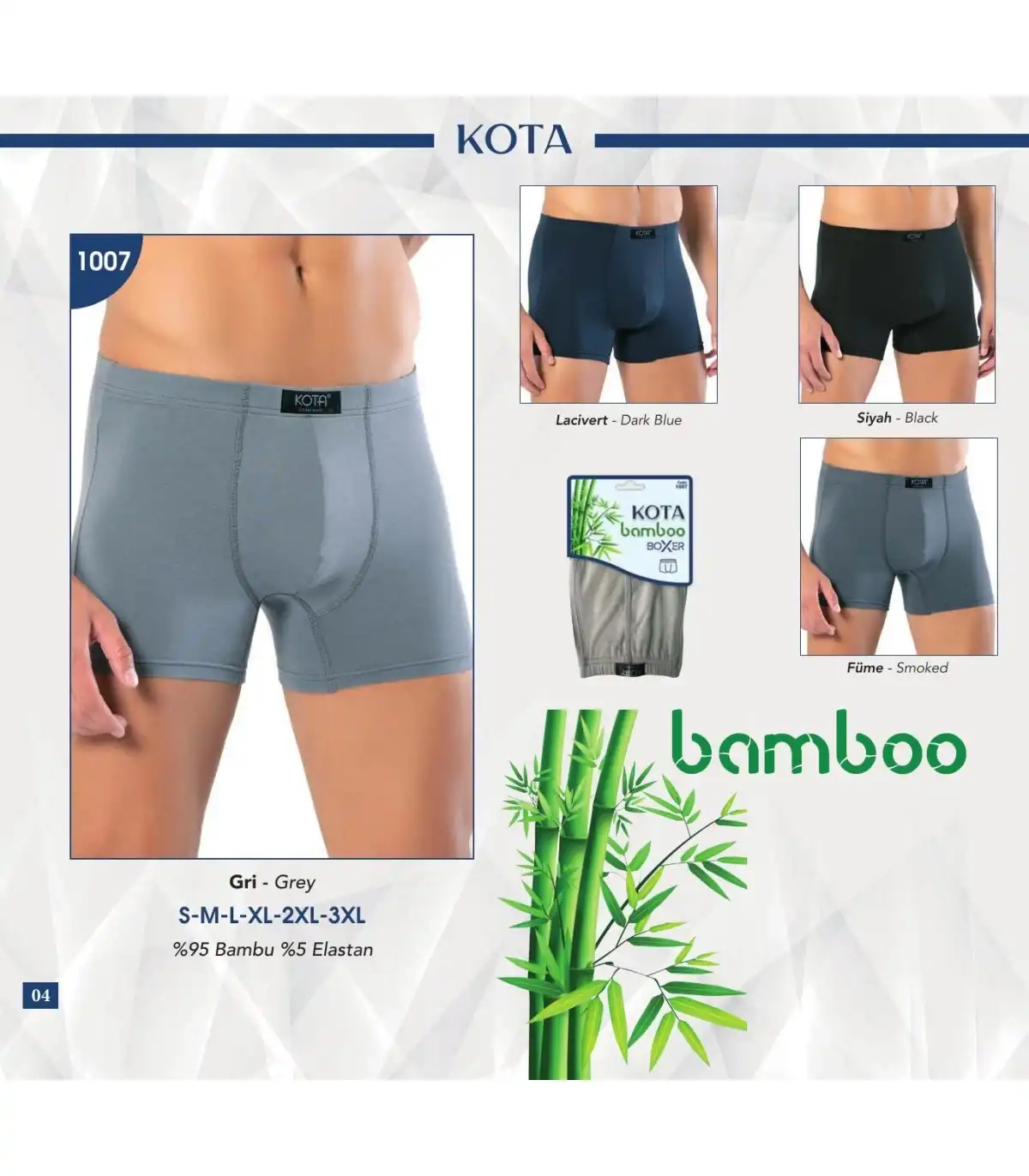Wakor Toptan, iç giyimde kaliteyi ve şıklığı bir araya getiriyor! Kota Erkek Bambu Boxer koleksiyonumuzla her tarza uygun iç giyim seçeneklerini keşfedin. Ürünlerimizde çeşitli renk ve beden seçenekleri mevcuttur, böylece tam size uygun olanı bulabilirsiniz.