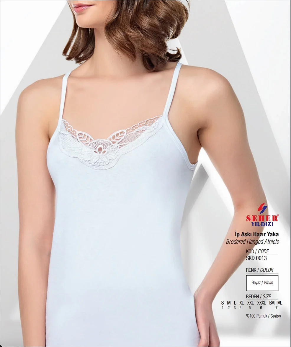 Seher Bayan İp Askı Hazır Yaka Atlet ile üzerinize giydiğiniz her parçayı şıklıkla tamamlayabilirsiniz.