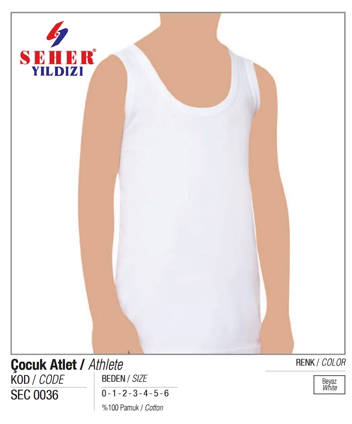 Seher Çocuk Atlet, farklı renklerde ve çeşitli bedenlerde sunulmaktadır. Sitemizdeki ürün sayfalarında bulunan ölçü tablolarını inceleyerek doğru seçimi yapabilirsiniz. İhtiyacınıza en uygun iç giyim ürünlerini seçmek için hemen tıklayın! Wakor Toptan İç Giyim Ürünleri - En Trend Renk ve Beden Seçenekleriyle.