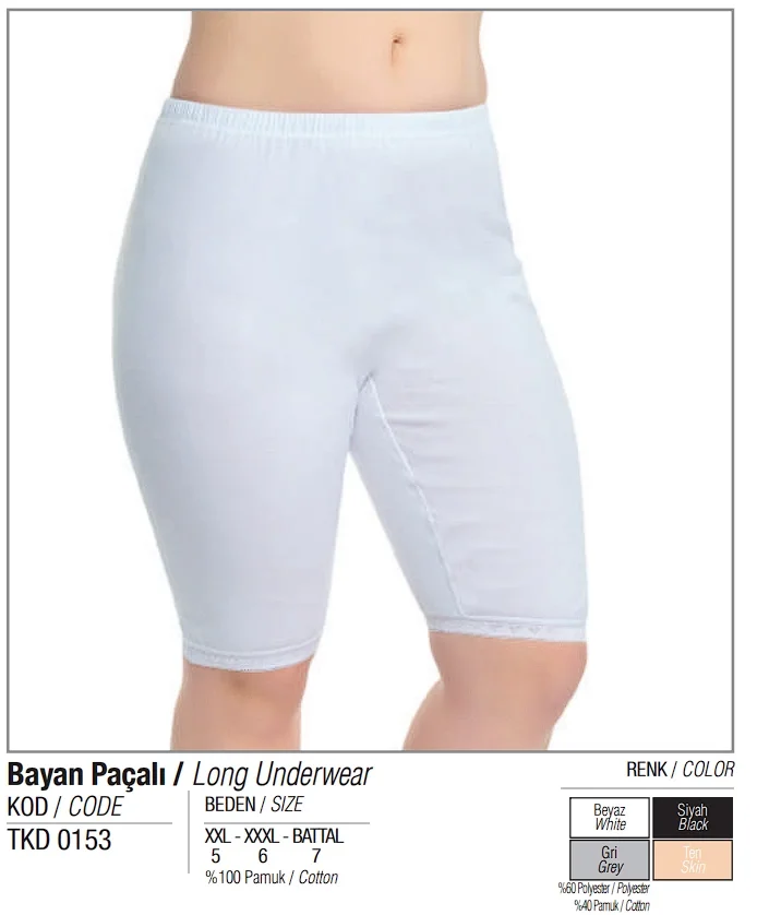 Tutku Bayan Paçalı şıklığı ve rahatlığı bir araya getiriyor. %100 pamuk malzemeden üretilmiştir ve beyaz, ten, siyah renk seçenekleriyle sunulmaktadır. Gri renk seçeneği ise %60 polyester ve %40 pamuk karışımıdır.
