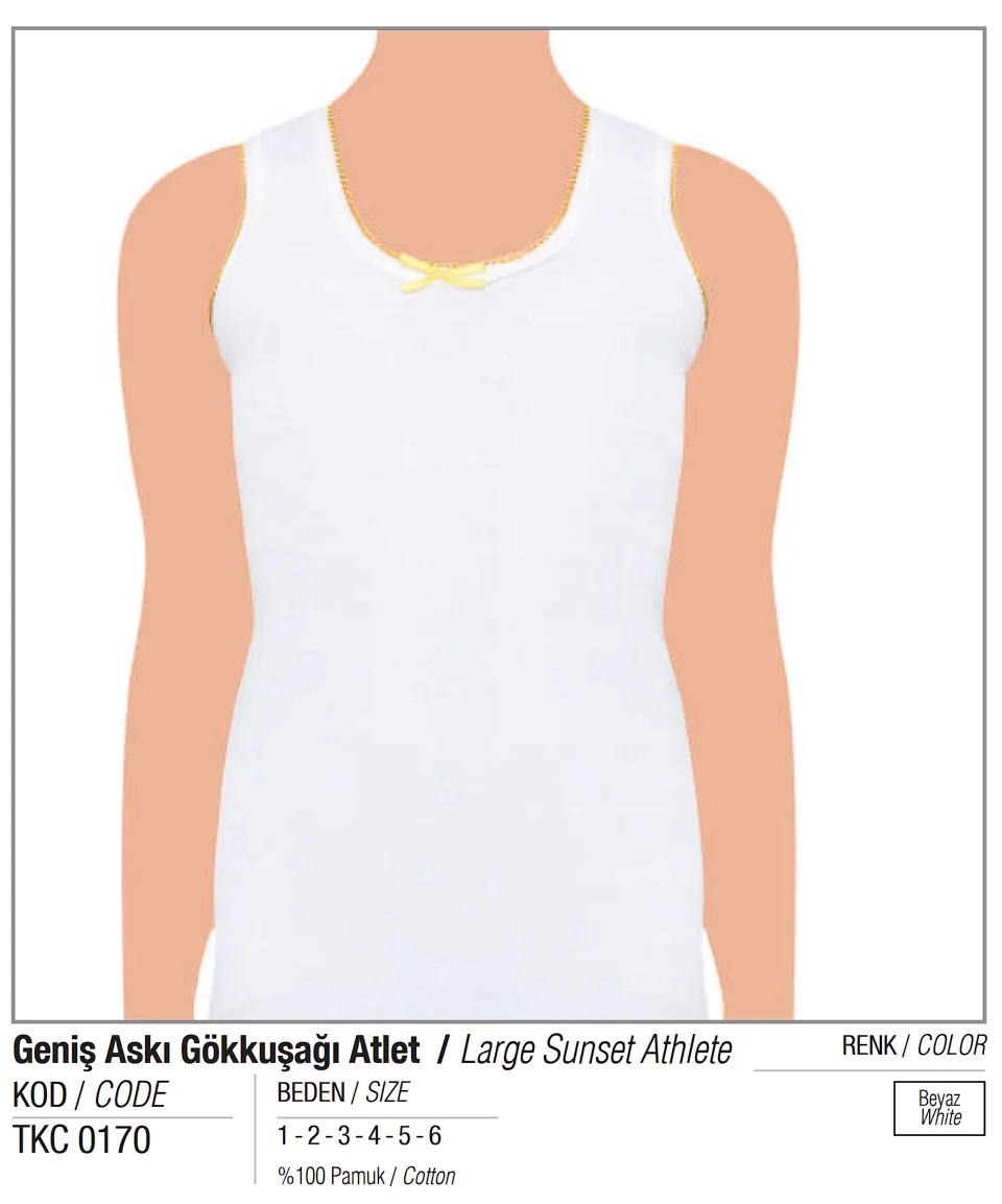Tutku Kız Geniş Askı Güpür İşlemeli Atlet, farklı renklerde ve çeşitli bedenlerde sunulmaktadır. Sitemizdeki ürün sayfalarında bulunan ölçü tablolarını inceleyerek doğru seçimi yapabilirsiniz. İhtiyacınıza en uygun iç giyim ürünlerini seçmek için hemen tıklayın! Wakor Toptan İç Giyim Ürünleri - En Trend Renk ve Beden Seçenekleriyle.