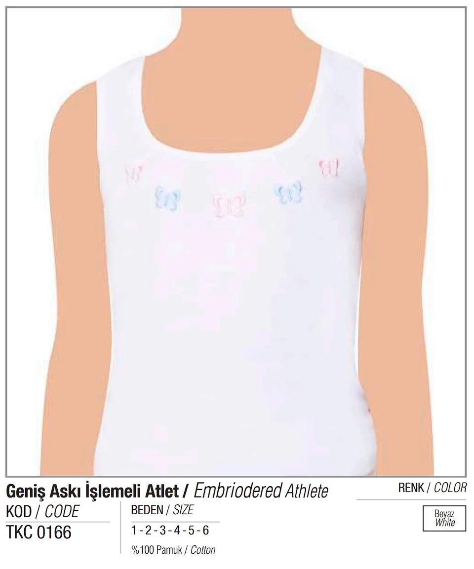 Tutku Kız Geniş Askılı İşlemeli Atlet, farklı renklerde ve çeşitli bedenlerde sunulmaktadır. Sitemizdeki ürün sayfalarında bulunan ölçü tablolarını inceleyerek doğru seçimi yapabilirsiniz. İhtiyacınıza en uygun iç giyim ürünlerini seçmek için hemen tıklayın! Wakor Toptan İç Giyim Ürünleri - En Trend Renk ve Beden Seçenekleriyle.