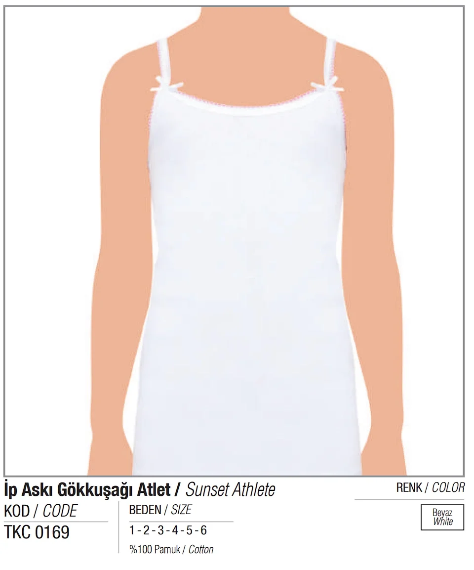 Tutku %100 Pamuk İp Askı İşlemeli Kız Çocuk Atlet, beyaz renk seçeneği ve sevimli işlemeleriyle dikkat çeker. %100 pamuk dokusu, çocuklar için konforlu ve sağlıklı bir iç giyim seçeneği sunar. Şimdi satın alın, çocuğunuzun rahatlığını ve şıklığını ön planda tutun!