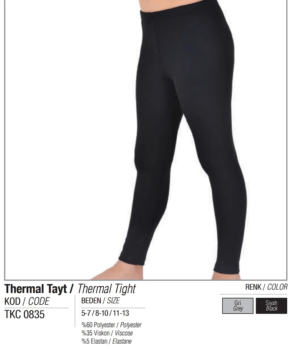 Tutku Kız Thermal Tayt, %60 polyester, %35 viskon ve %5 elastan malzemeleriyle üretilmiştir. Soğuk havalarda stil ve konforu bir araya getiren bu termal tayt, çocukların rahat etmesi için idealdir.